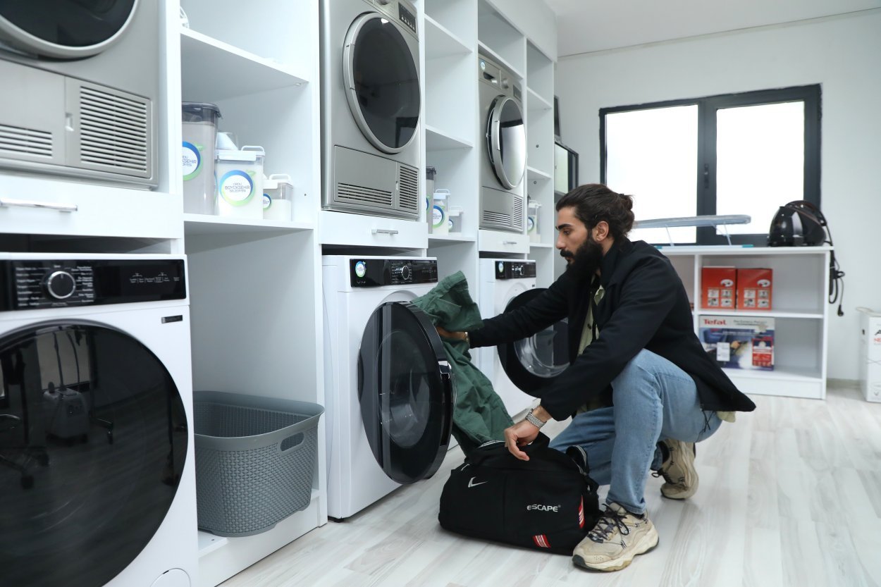 Kent Çamaşırhanesi’nde gençlere evlerinden uzakta kendilerini rahat hissedebilecekleri bir ortam sunuluyor. Öğrenciler burada çamaşırlarını tamamen ücretsiz bir şekilde yıkayabilme imkanına sahip oluy